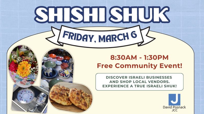 We invite the community to come together to shop, enjoy, and experience the sights, sounds, and flavors of Israel at the Shishi Shuk, featuring local Israeli businesses.